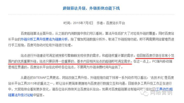自从2015年7月3日,百度站长平台公布《超链算法升级,外链拒绝功能下线》,百度官方呼吁各位站点,不要再为外链浪费时间与金钱了。这个消息在SEO界引起来轩然大波。